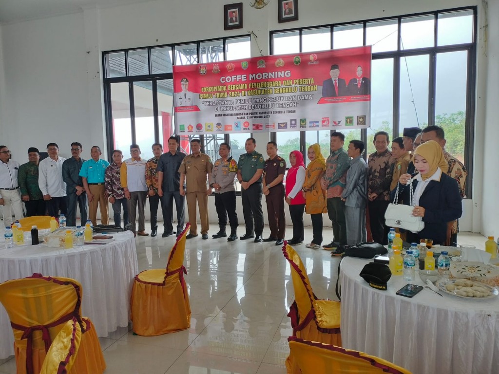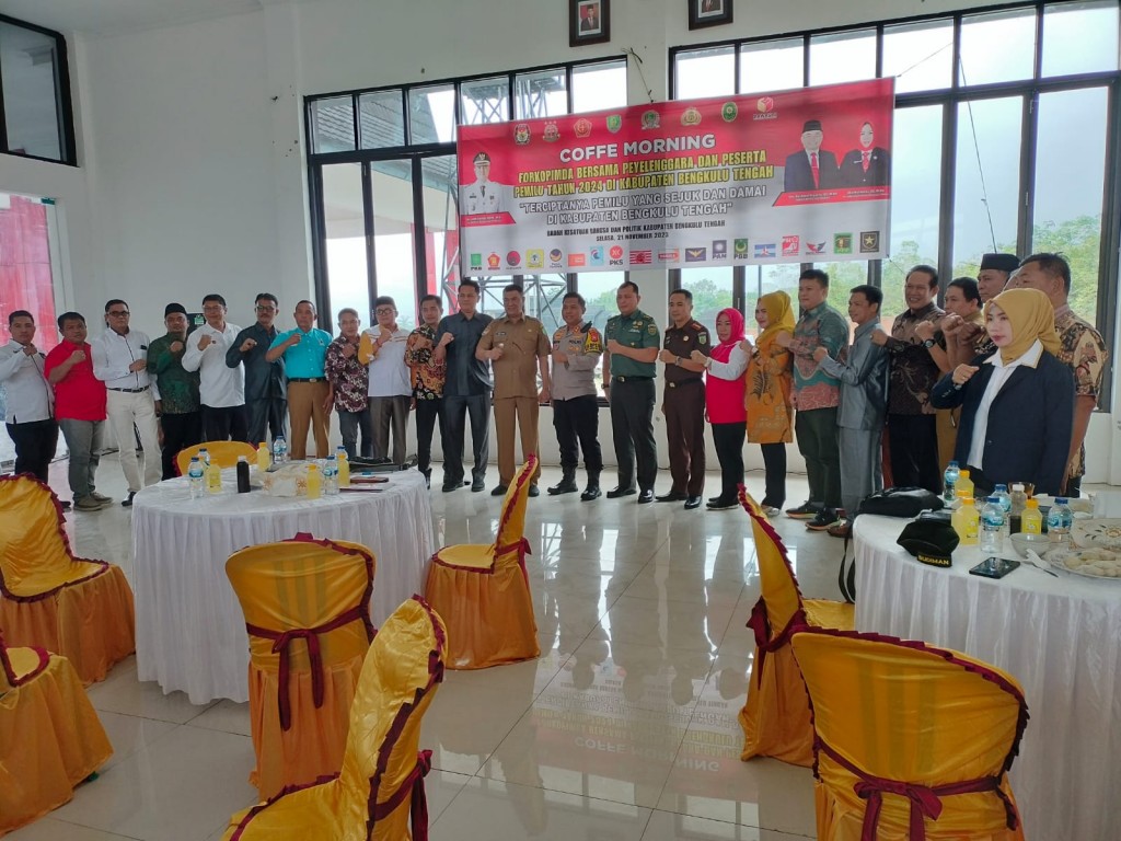 Selasa, 21 Nopember 2023 Bertempat di Pendopo K,antor Bupati Bengkulu Tengah di Selenggarakan Coffee Morning FORKOPIMDA BERSAMA PENYELENGGARA DAN PESERTA PEMILU TAHUN-2024, DI KABUPATEN BENGKULU TENGAH