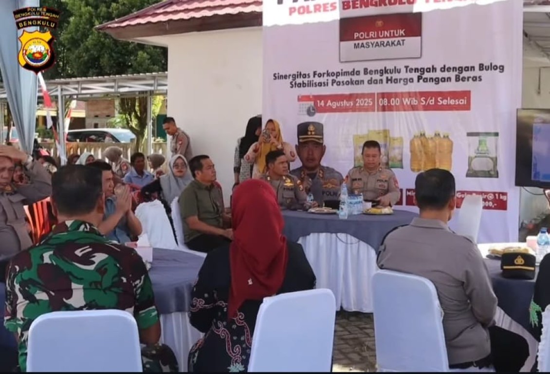 Kesbangpol_benteng. Kamis (14/8/2025), Polres Bengkulu Tengah menggelar Bazar Murah melalui program Gerakan Pangan Murah (GPM) Polri Tahun 2025 yang resmi diluncurkan oleh Bupati Bengkulu Tengah Drs. Rachmat Riyanto, S.T.,M.AP, bertempat di Halaman Kantor Camat Karang Tinggi.
