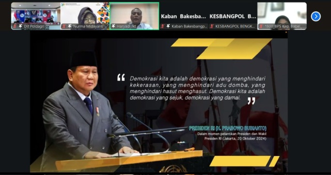 Kesbangpol_benteng, Senin 10 November 2025 bertempat di Ruang kerjanya, Kepala Bidang Politik Dalam Negeri: Desi Arisandi S.Pd.,M.Ling mengikuti Zoom Meeting Rakornas IDI (Indeks Demokrasi Indonesia). Tingkat Provinsi. Zoom di Mulai Pukul 09.00 Wib s/d Selesai.
