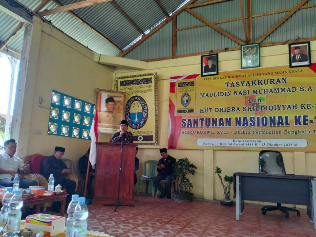Kesbangpol_benteng, Kamis 13 Oktober 2022 bertempat di Aula Shiddiqiyyah Desa Abu Sakim, Kecamatan Pondok Kelapa, Kaban Kesbangpol : Meizuar, S.H.,M.M.,M.H menghadiri acara Tasyakkuran Maulidin Nabi Muhammad SAW dan HUT DHIBRA (Dhilaal Berkat Rohmat Allah SWT) SHIDDIQIYYAH KE-22, Santunan Nasional Ke-18, acara dimulai pukul 09.00 Wib S/d Selesai. Acara ini berlangsung serentak di 25 Provinsi yang ada di Indonesia. Bahkan, kegiatan ini juga diikuti oleh warga Shidiqqiyah di luar negeri.