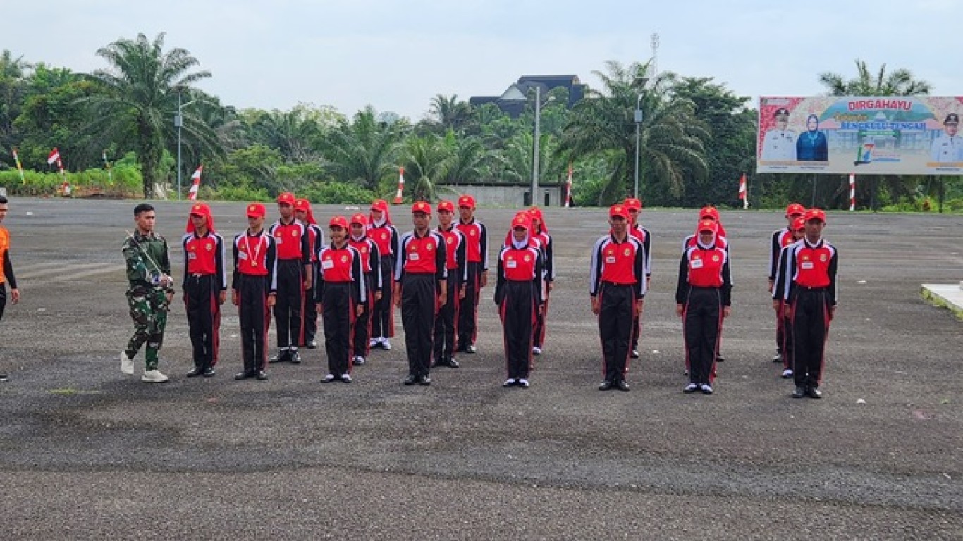 Kesbangpol_benteng. Menjelang Pengibaran Bendera pada HUT RI 80 besok tanggal 17 Agustus 2025. Paskibraka Kabupaten Bengkulu Tengah yang sudah di kukuhkan kemarin (15/08/25) menjalani Latihan Pemantapan pada hari Sabtu 16 Agustus 2025 bertempat di Lapangan Gunung bungkuk.