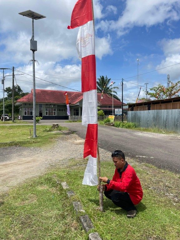 Proses pemasangan dilakukan dengan penuh semangat dan kekompakan. Umbul-umbul dipasang di sekitar halaman kantor dan area strategis Lapangan Gunung Bungkuk yang mudah terlihat oleh masyarakat.